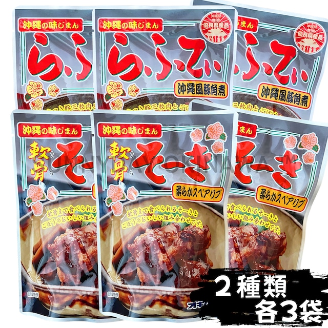 らふてぃ 軟骨そーき 食べ比べセット ごぼう入り 6袋(各3袋) オキハム