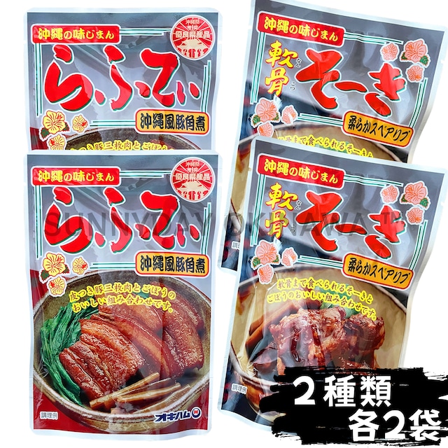 らふてぃ 軟骨そーき 食べ比べセット ごぼう入り 4袋(各2袋) オキハム