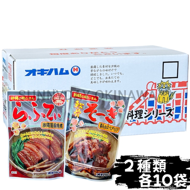 らふてぃ 軟骨そーき 食べ比べセット ごぼう入り 20袋(各10袋) オキハム