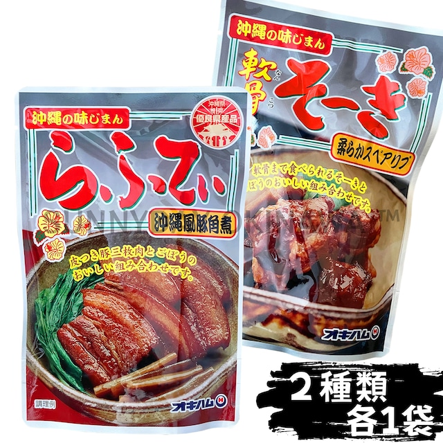 らふてぃ 軟骨そーき 食べ比べセット ごぼう入り 2袋(各1袋) オキハム