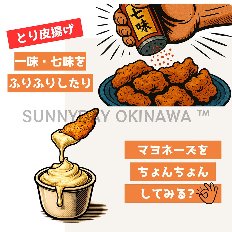 「カリッとパリッと」沖縄県産鶏皮の旨味まるごと「とり皮揚げ」。沖縄の塩「シママース」使用。