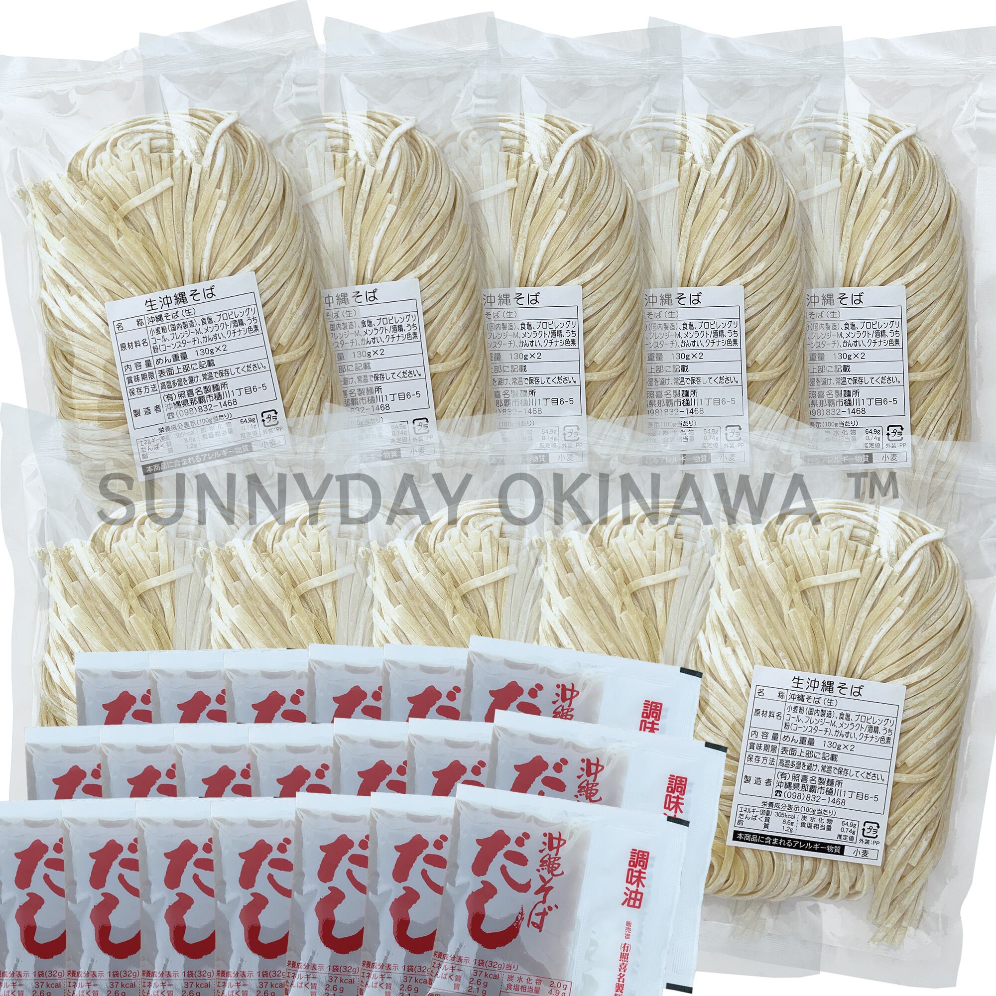 沖縄そば生麺 中太平麺 260g 10袋(20人前) そばだし付き 照喜名製麺所