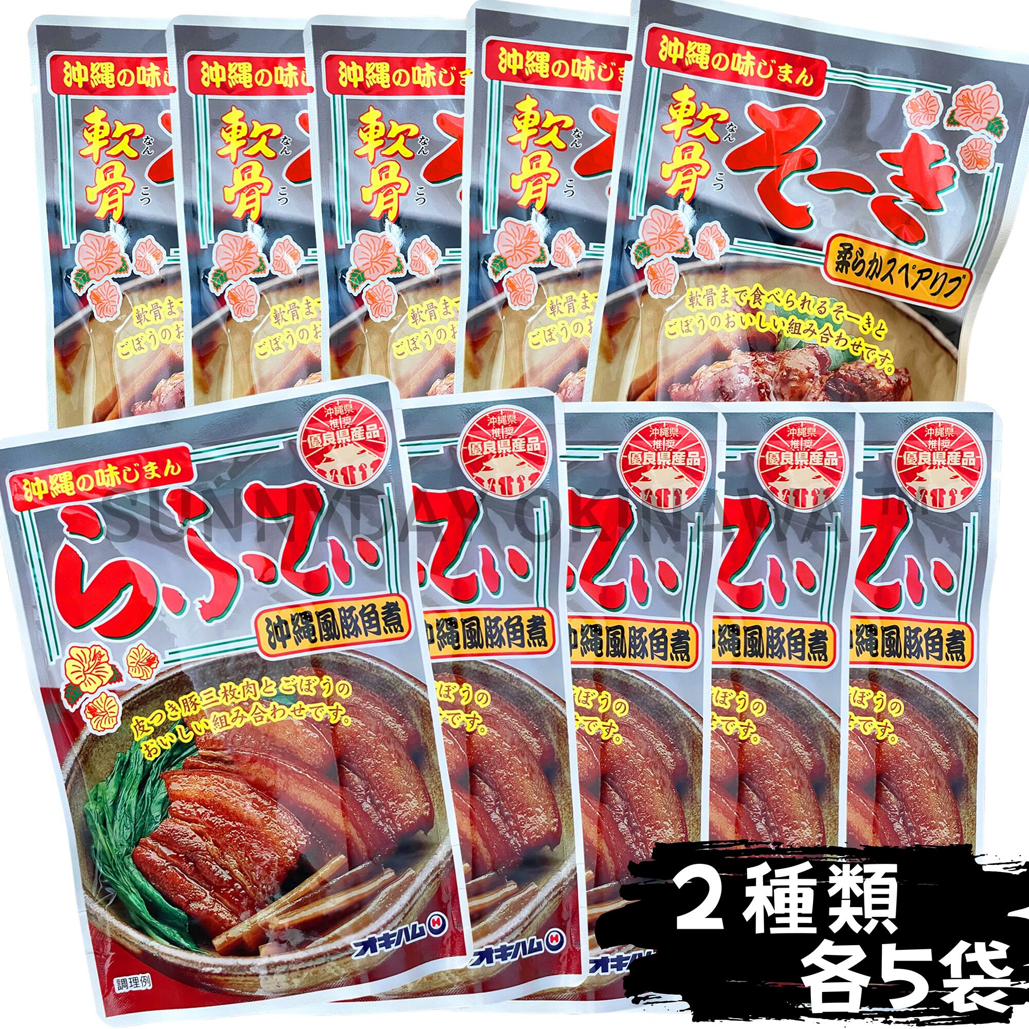 らふてぃ 軟骨そーき 食べ比べセット ごぼう入り 10袋(各5袋) オキハム