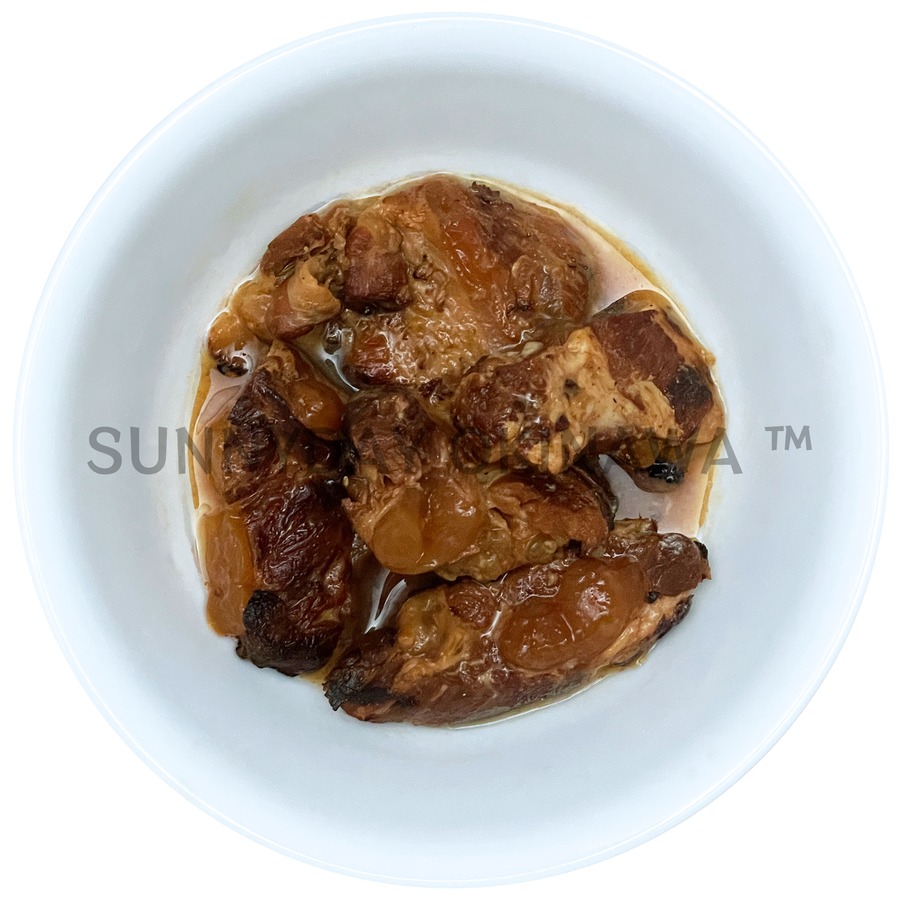 豚バラ肉(輸入)、しょうゆ、砂糖、酒/増粘剤(加工でん粉、キサンタンガム)、調味料(アミノ酸)、(一部に小麦・豚肉・大豆を含む)