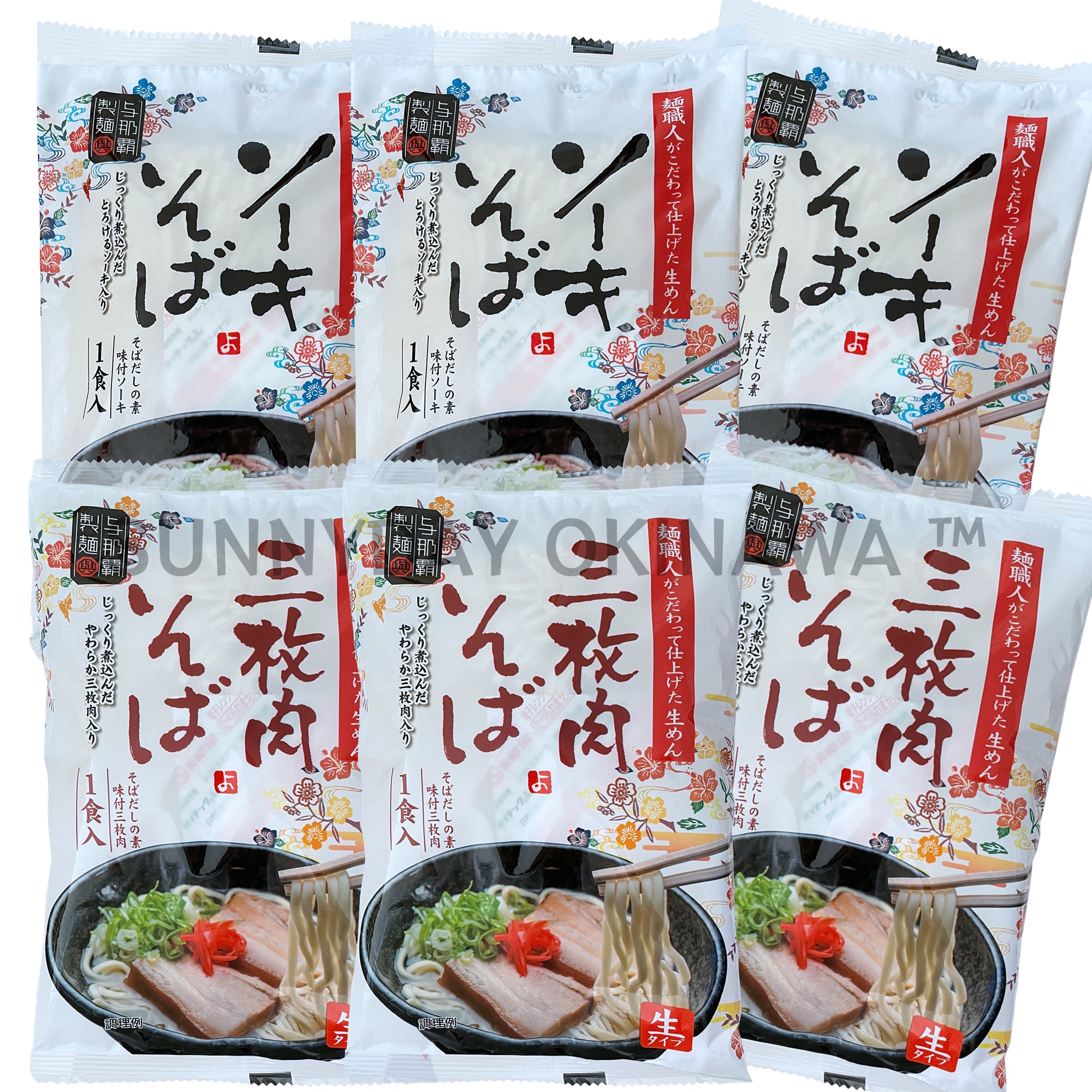 三枚肉そばとソーキそばの6袋(各3袋)セットです。