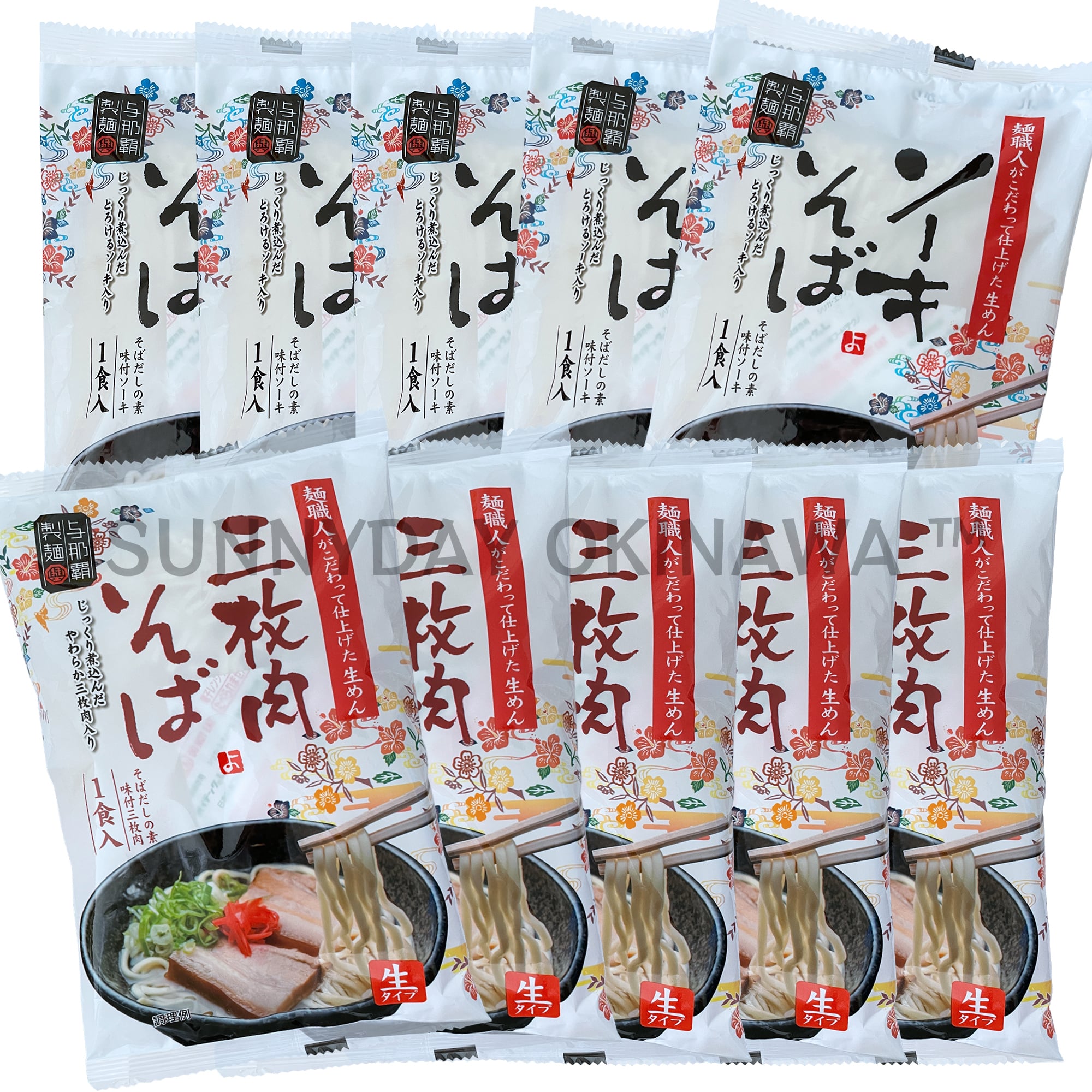三枚肉そばとソーキそばの10袋(各5袋)セットです。