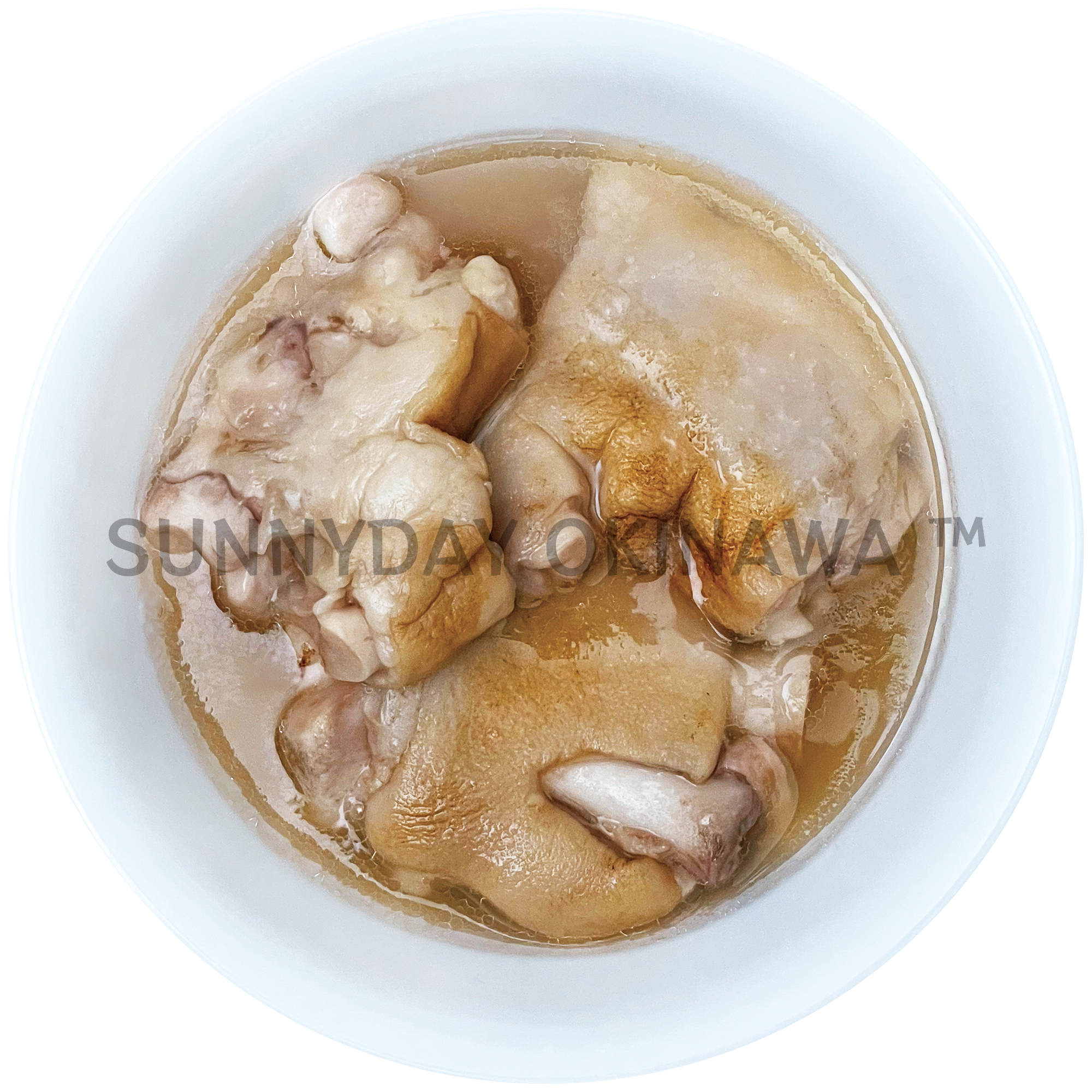 豚足(国産)、食塩(沖縄県製造)、おろしにんにく、おろし生姜、しょう油、香辛料/調味料(アミノ酸等)、スモークフレーバー、(一部に小麦・大豆・豚肉を含む)