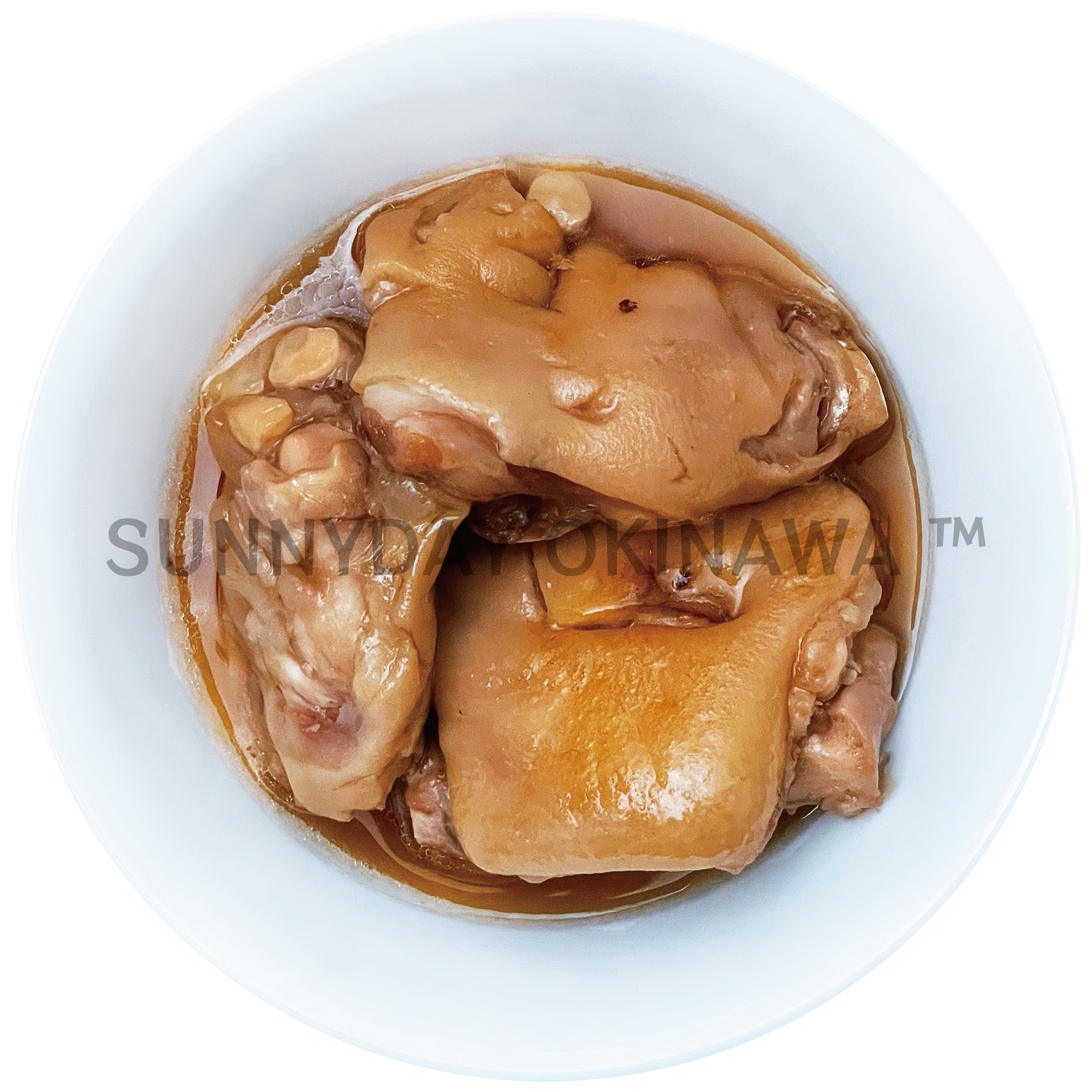 豚足(国産)、砂糖、たん白加水分解物、しょう油、泡盛、食塩、おろしにんにく/調味料(アミノ酸)、(一部に小麦・大豆・豚肉・ゼラチンを含む)