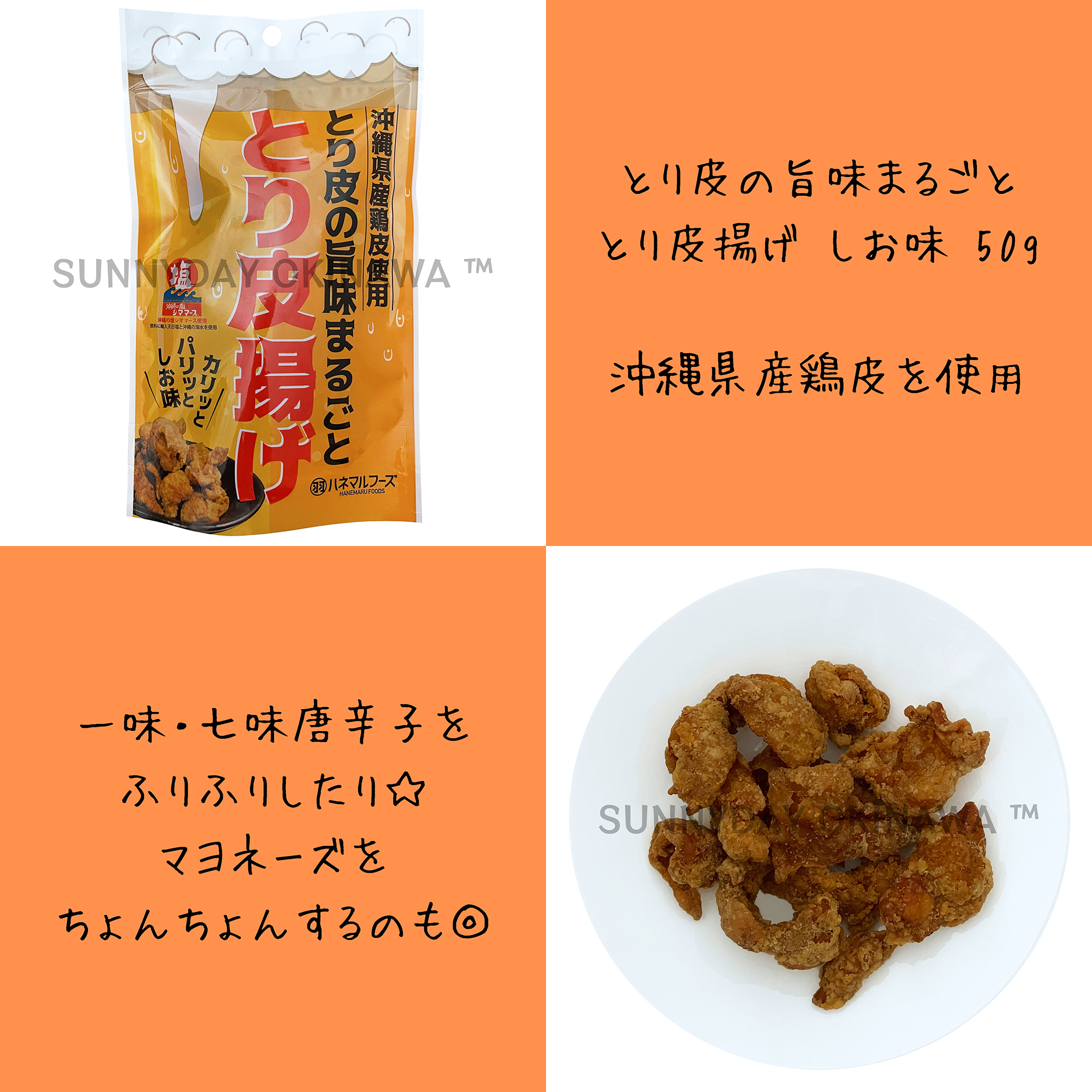 鶏皮(沖縄県産)、小麦粉、ラード、食塩(沖縄の塩 シママース 100%使用)