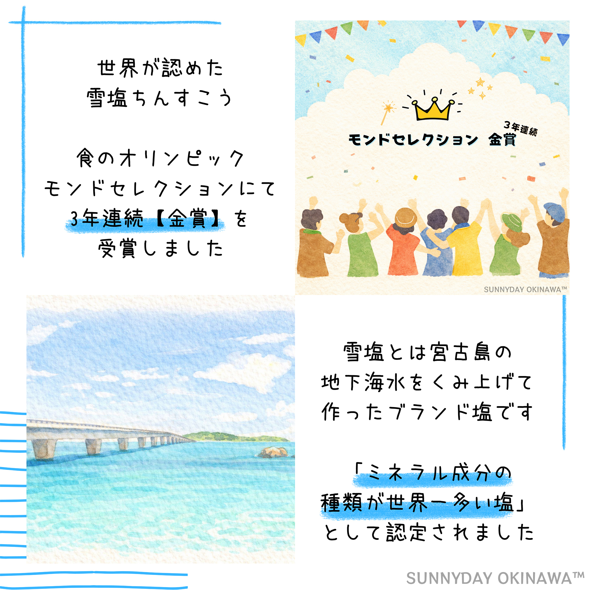 沖縄県・宮古島のブランド塩「雪塩」を使用したほんのり甘じょっぱいちんすこうです。