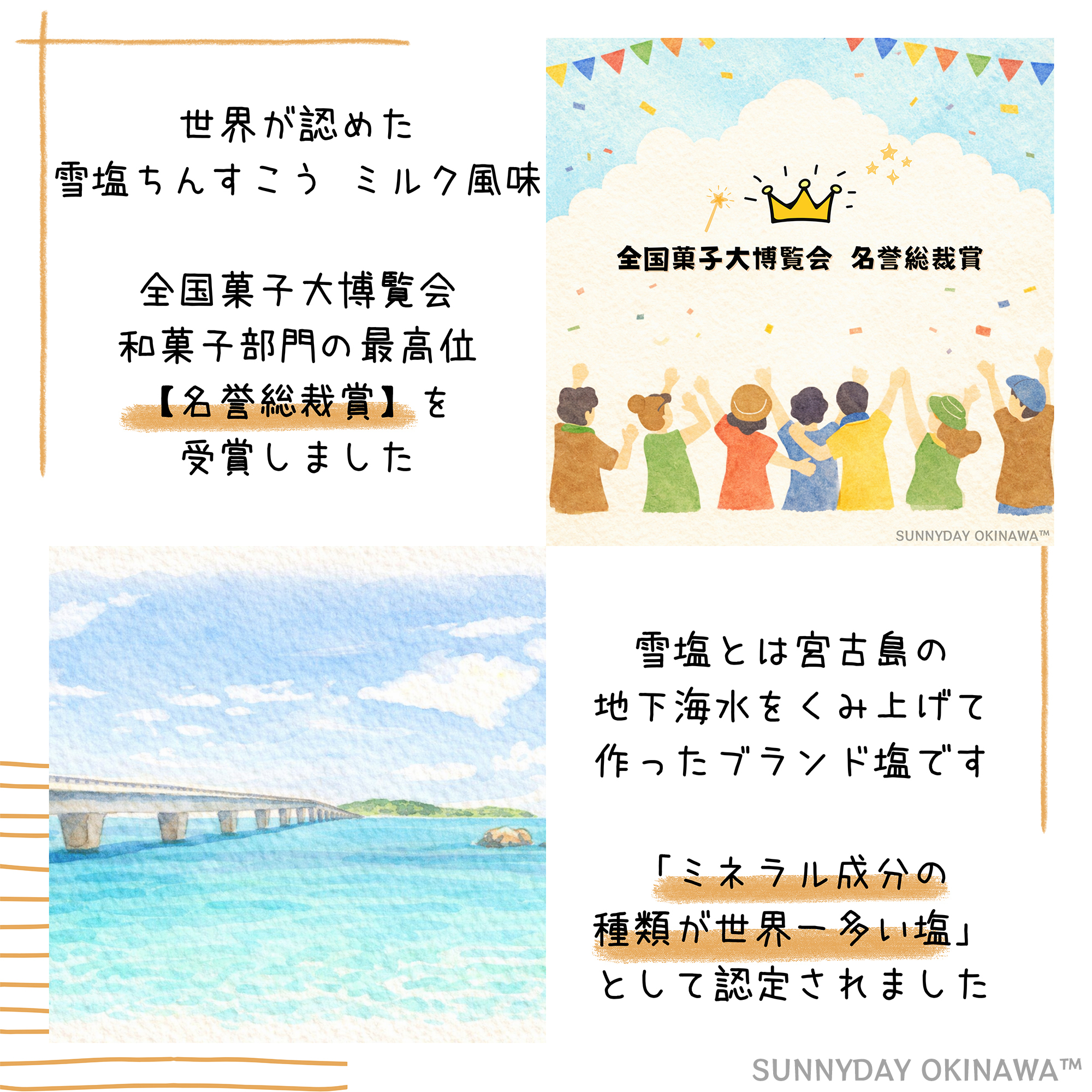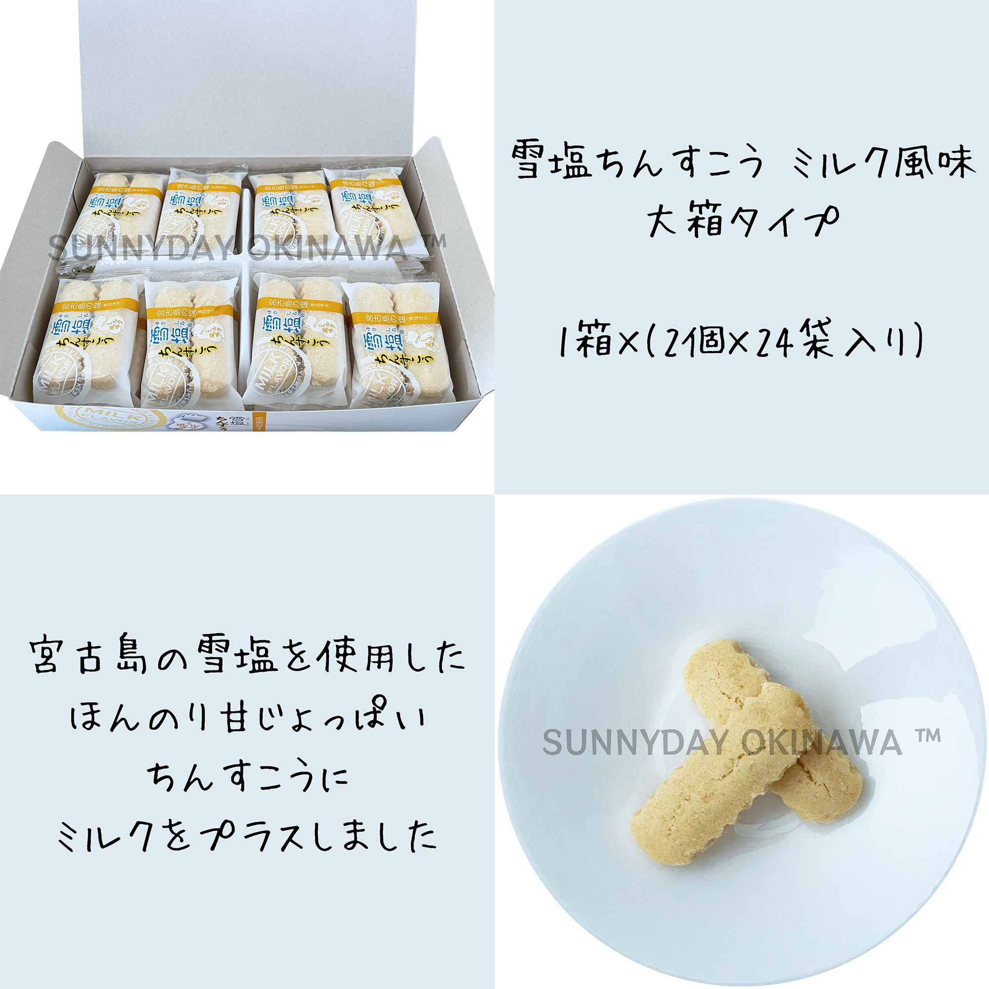 沖縄県・宮古島のブランド塩「雪塩」を使用したほんのり甘じょっぱいちんすこうにミルクをプラスしました。