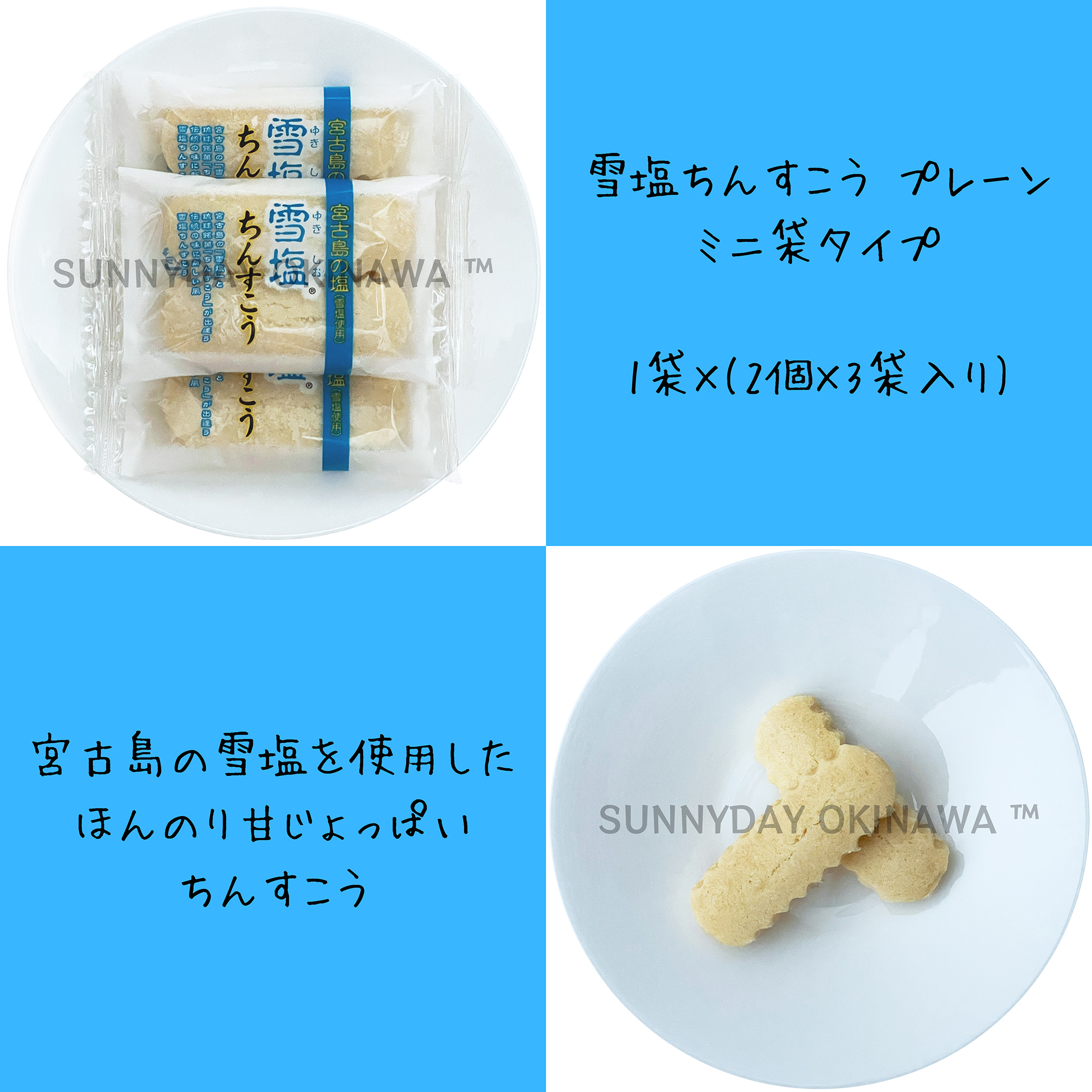 沖縄県・宮古島のブランド塩「雪塩」を使用したほんのり甘じょっぱいちんすこうです。