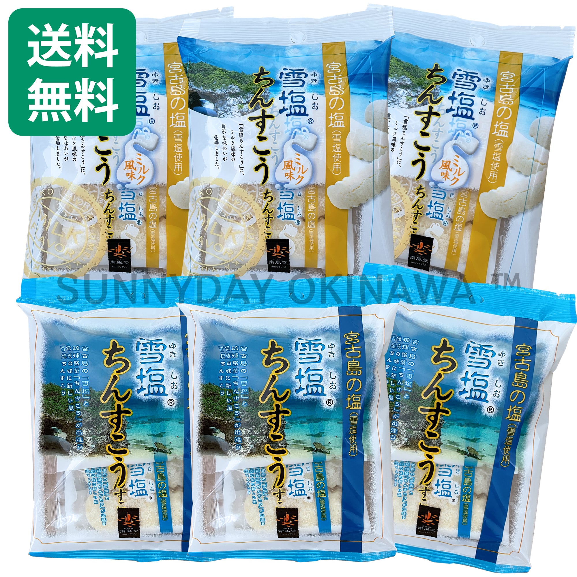 沖縄南風堂の「雪塩ちんすこう ノーマル & ミルク風味」6袋(各3袋)セットです。