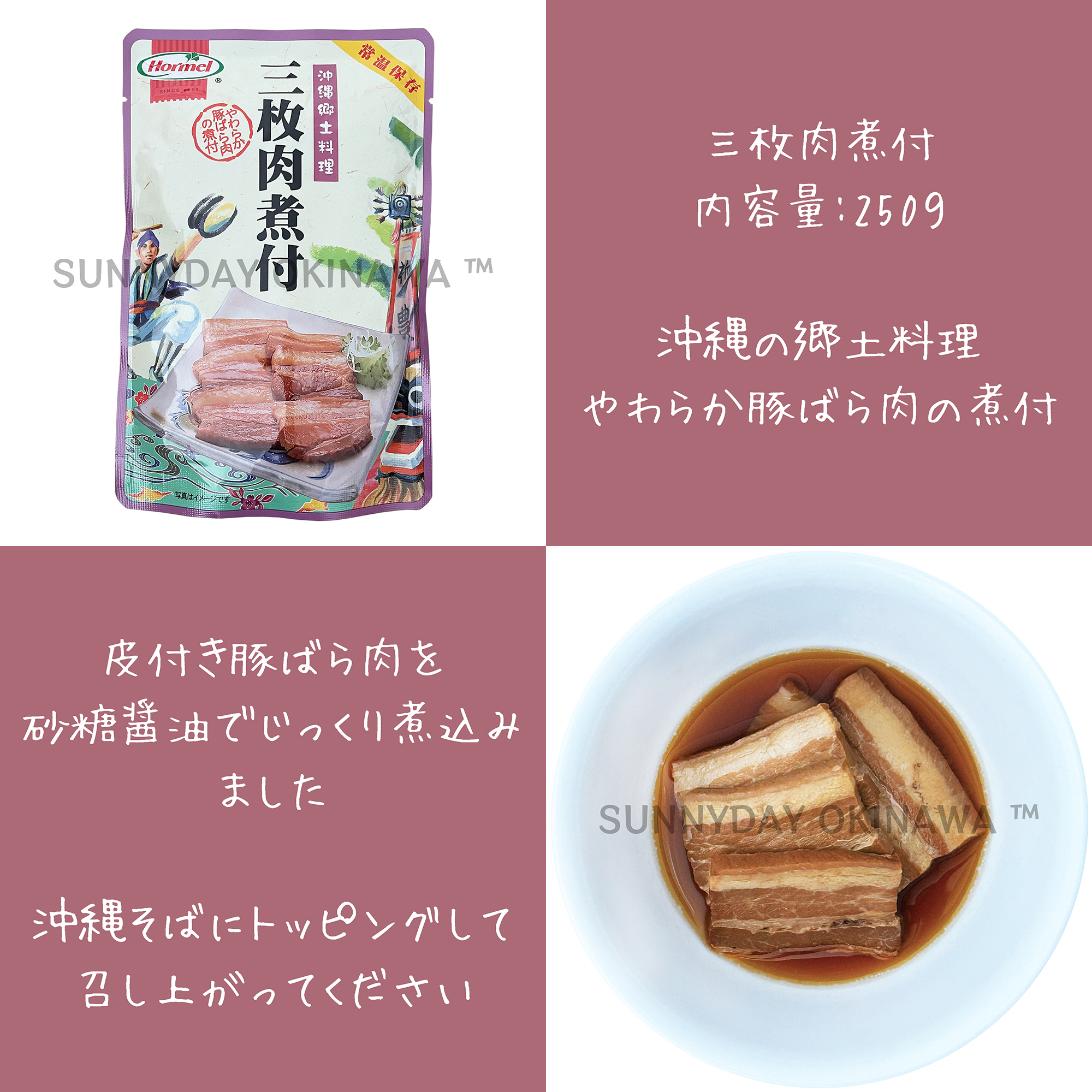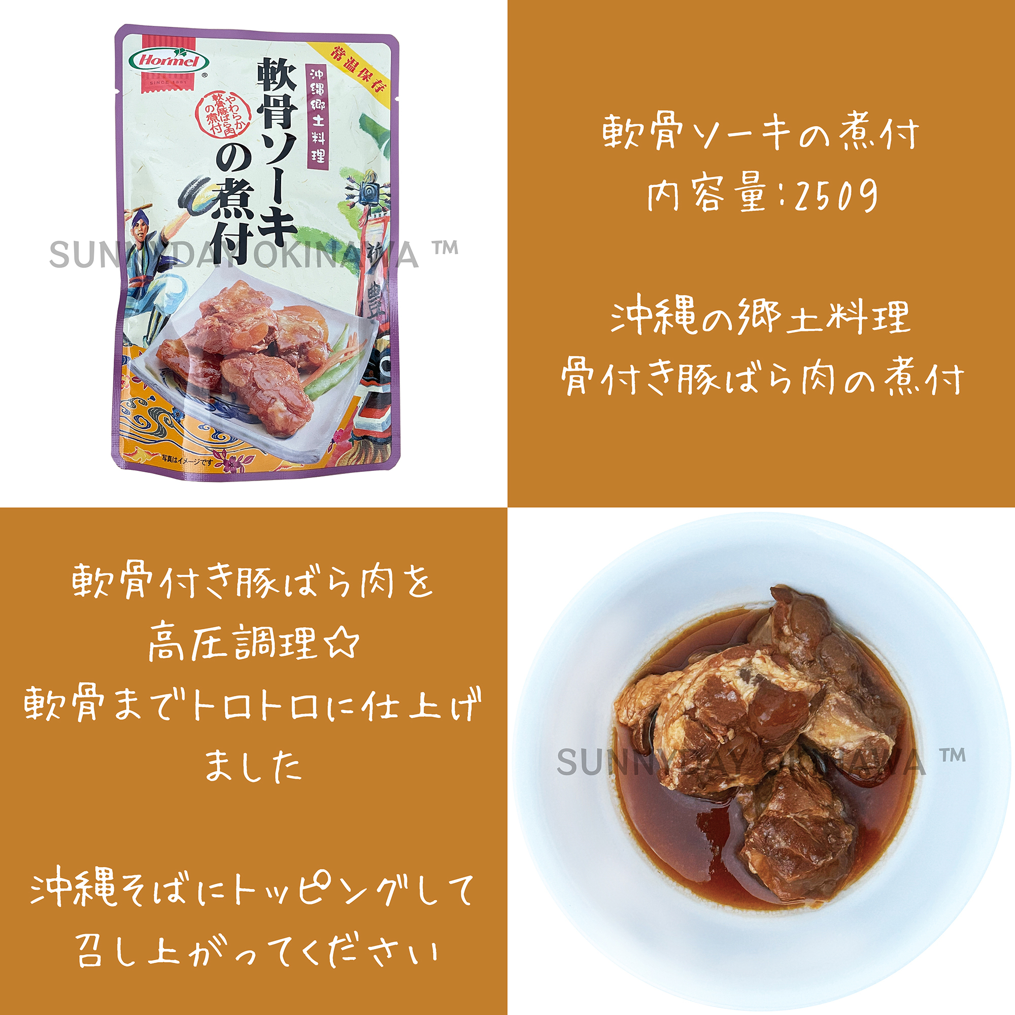 温かい麺とスープに三枚肉煮付・軟骨ソーキの煮付をダブルトッピングして出来上がり☆